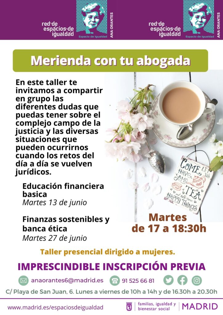 En este taller te invitamos a compartir en grupo las diferentes dudas que puedas tener sobre el complejo campo de las finanzas y las diversas situaciones que pueden ocurrirnos cuando los retos del día a día se vuelven económicos. Nos escucharemos las unas a las otras, mientras se irán resolviendo las diferentes problemáticas planteadas, tomándonos un café mientras charlamos. Este mes, contaremos con dos temáticas diferentes: