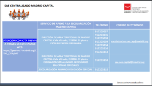 INFORMACIÓN SAE: SERVICIO DE AYUDA A LA ESCOLARIZACIÓN